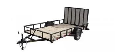 There is a full range of sizes available in 60 in. and 77 in. widths and in lengths from 10 ft. to 14 ft. A 3,500 lb. axle and 15″ tires are standard equipment. This trailer is great for hauling your lawn mower or four-wheeler. Treated flooring and new wheels with new trailer rated radial tires are standard equipment.